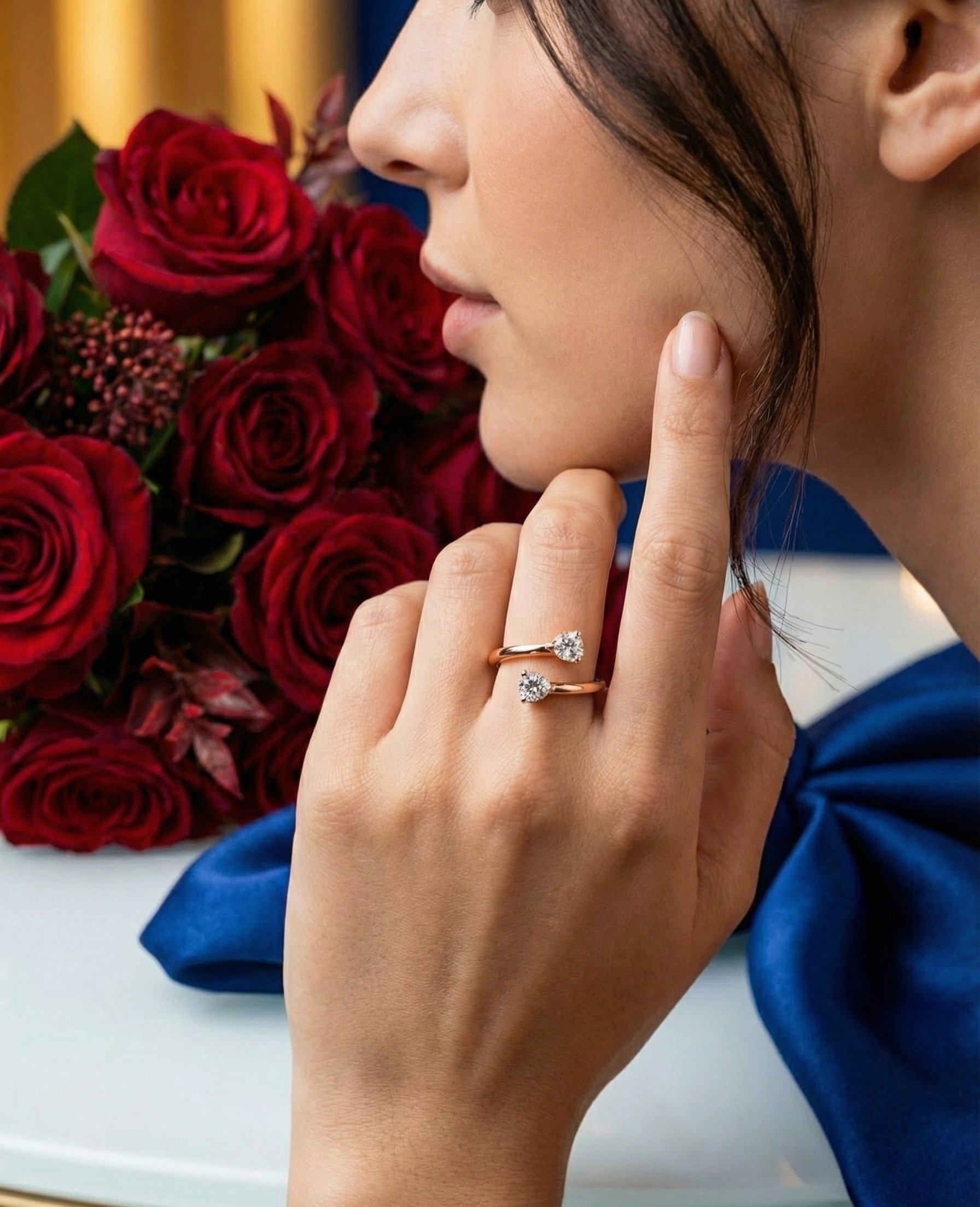 Preserve the brilliance of your RVRAVIEN rings by storing it in a dry, airtight container when not in use. Avoid direct exposure to water, perfumes, and harsh chemicals. Gently wipe with a soft, dry cloth after every wear to maintain its lustre.