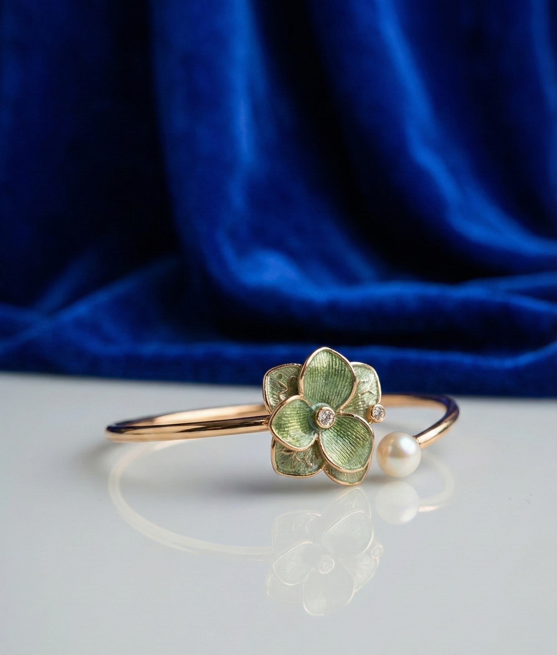 Rose Gold Green Petal Adjustable Bracelet | RVK-1