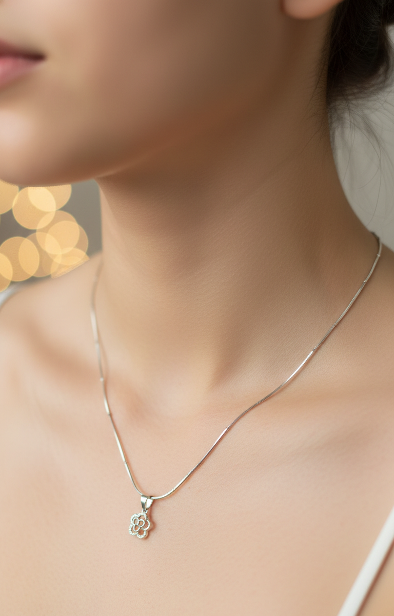 Preserve the brilliance of your RVRAVIEN pendant by storing it in a dry, airtight container when not in use. Avoid direct contact with water, perfumes, and harsh chemicals. Gently wipe the pendant and chain with a soft, dry cloth after every wear to maintain its lasting lustre.