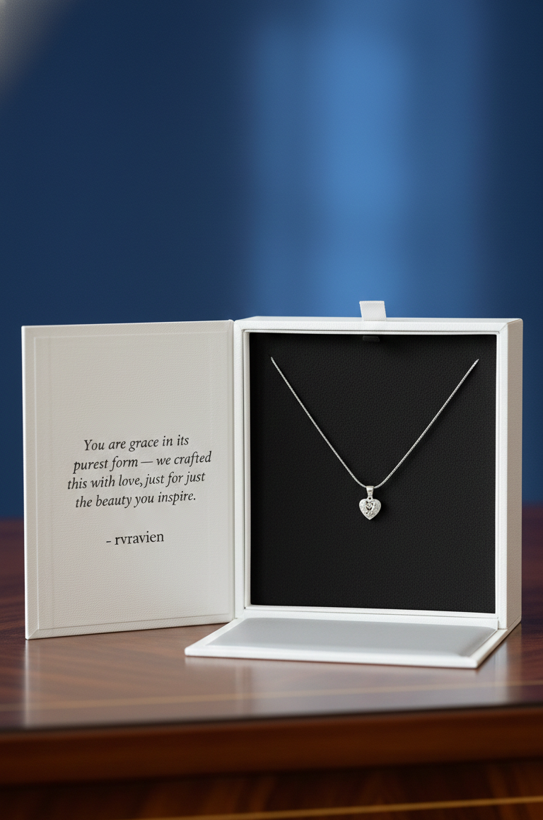 Preserve the brilliance of your RVRAVIEN pendant by storing it in a dry, airtight container when not in use. Avoid direct contact with water, perfumes, and harsh chemicals. Gently wipe the pendant and chain with a soft, dry cloth after every wear to maintain its lasting lustre.