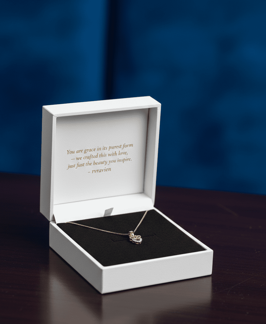 Preserve the brilliance of your RVRAVIEN pendant by storing it in a dry, airtight container when not in use. Avoid direct contact with water, perfumes, lotions, and harsh chemicals. After every wear, gently wipe the pendant and chain with a soft, dry cloth to maintain its lasting lustre and shine.