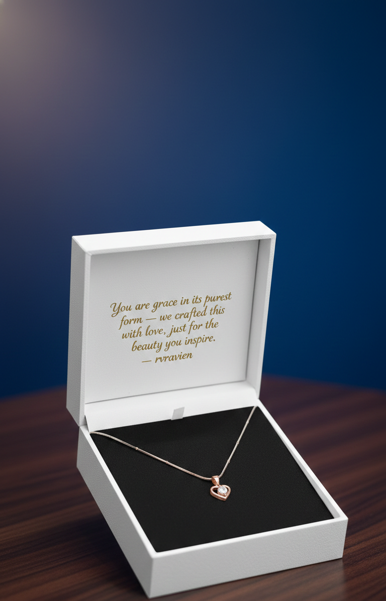 Preserve the brilliance of your RVRAVIEN pendant by storing it in a dry, airtight container when not in use. Avoid direct contact with water, perfumes, and harsh chemicals. Gently wipe the pendant and chain with a soft, dry cloth after every wear to maintain its lasting lustre.